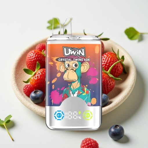 UWIN Crystal Twins 40000 Puffs Double Saveur 32ml Type-C Fraise Framboise Cerise Mr Blue